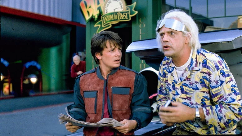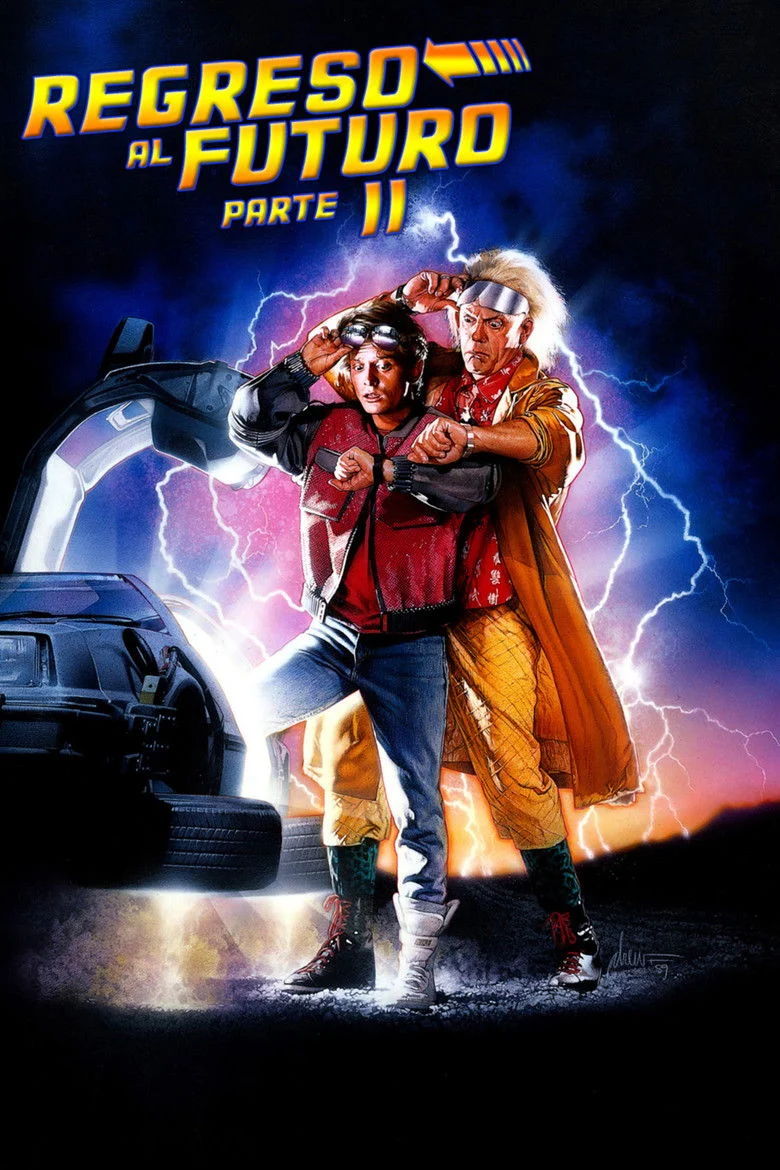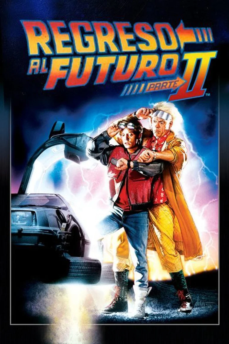 Sinopsis: Aunque a Marty McFly todavía le falta tiempo para asimilar el hecho de estar viviendo dentro de la familia perfecta gracias a su anterior viaje en el tiempo, no le queda ni espacio para respirar cuando su amigo Doc aparece de improviso con la máquina del tiempo (mucho más modernizada), e insta a que le acompañen él y su novia a viajar al futuro para solucionar un problema con la ley que tendrá uno de sus futuros hijos. En la tremenda vorágine futurista, con todo lo que ello conlleva, del Hill Valley de 2015, la presencia de tales viajeros temporales causará un efecto mayor que el que iban a arreglar. Un almanaque deportivo y la posesión del secreto de la existencia de la máquina del tiempo por parte del siempre villano Biff Bannett, serán los ingredientes que conjugarán una causa-efecto en el pasado, en el presente y en el propio futuro, que hará que Marty y Doc se tengan que emplear a fondo para poner fin a la catástrofe a la que les lleva el destino.
