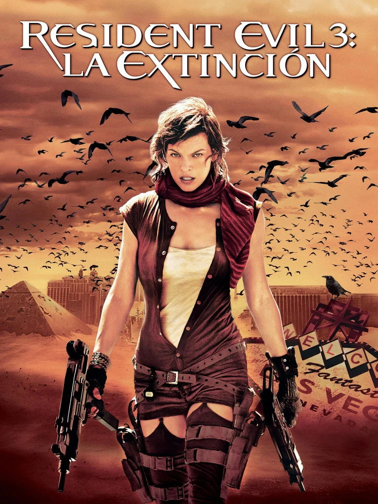 Sinopsis: Tercera entrega de la saga basada en los famosos videojuegos. En esta ocasión, nuestra heroína, Milla Jovovich, junto con los supervivientes de la catástrofe acontecida en la ciudad de Raccoon deben atravesar el desierto de Nevada con la esperanza de llegar a Alaska, antes de que los de la Corporación Umbrella les alcancen.