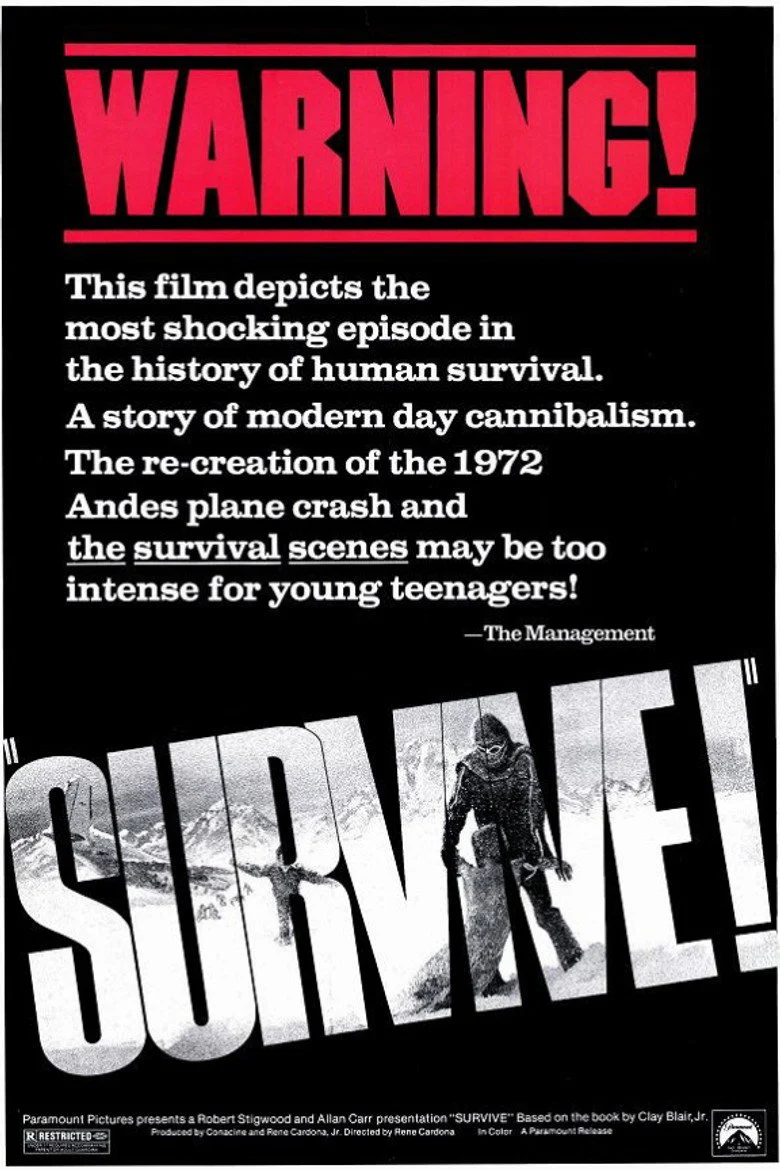 Sinopsis: América del sur, años 70. Un avión, en el que viaja un equipo uruguayo de rugby, sufre un fallo en pleno vuelo sobre las nevadas montañas de los Andes y tiene que aterrizar de forma forzosa y violenta. Tras la muerte de la mayoría de los pasajeros y en mitad de la nada, los supervivientes sufren el terror de la soledad y el frío. Debido a las bajas temperaturas, los cadáveres se conservan en buen estado, y al cabo de unos dias, cuando el hambre aprieta, deciden hacer algo que cambiará sus vidas para siempre: comerse a los compañeros muertos. Rezando para que alguna expedición de rescate los encuentre, el horror cada vez se apodera más de ellos cuando la práctica del canibalismo se convierte en algo habitual cada día que pasa.