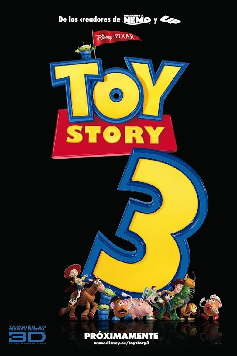 Sinopsis: Dado que su dueño Andy se prepara para ir a la universidad, el vaquero Woody, el astronauta Buzz y el resto de sus amigos juguetes acaban en una guardería menos idílica de lo que parecía, por lo que deberán maquinar un buen plan para escapar.