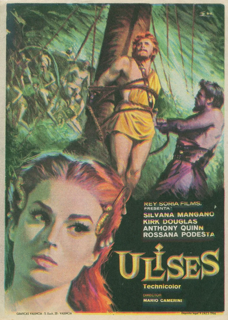 Sinopsis: Adaptación de "La Odisea" de Homero. Terminada la guerra de Troya con la victoria de los griegos, Ulises (Kirk Douglas) navegará durante diez largos años, teniendo que superar terribles dificultades, antes de llegar a su palacio de Ítaca.