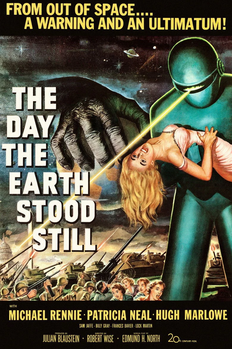 Sinopsis: Una nave extraterrestre llega a la tierra con la misión de entregar a los hombres un importante mensaje. El mundo entero queda conmocionado el día en que, sin previo aviso, un platillo aterriza en Washington y de él sale Klaatu, un alienígena de aspecto humano acompañado de Gort, un amenazante robot. La petición que Klaatu hace a todos los gobernantes del mundo es rechazada. Así las cosas, Klaatu decide observar cómo viven los humanos y, para ello, se hospeda en la casa de una mujer (Patricia Neal), madre de un chico, con el que Klaatu entabla amistad.