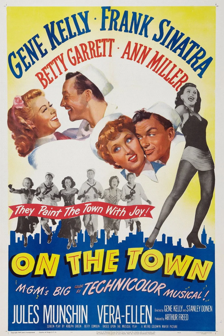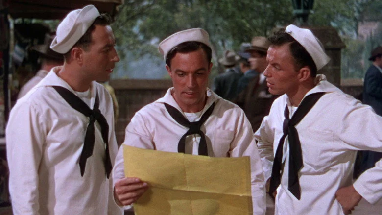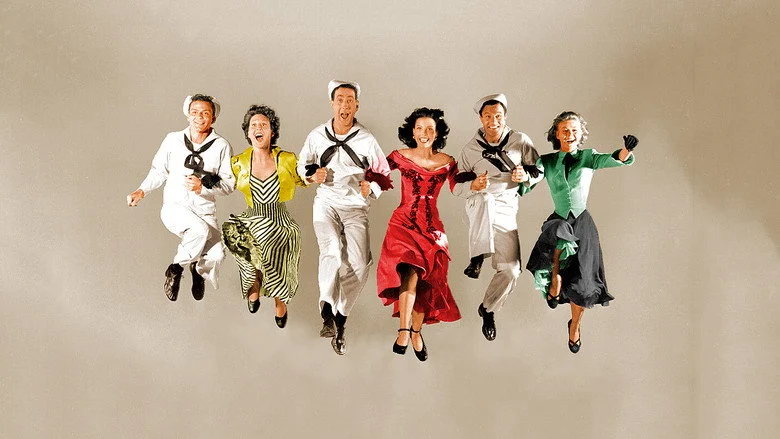 Sinopsis: Tres marineros de permiso disfrutan de un alegre, romántico y musical día de permiso. Donen y Kelly ruedan su ópera prima en la que, por primera vez en la historia del cine, las cámaras abandonan los platós y los decorados interiores para salir a las calles a rodar los bailes de estos tres vitalistas marineros.