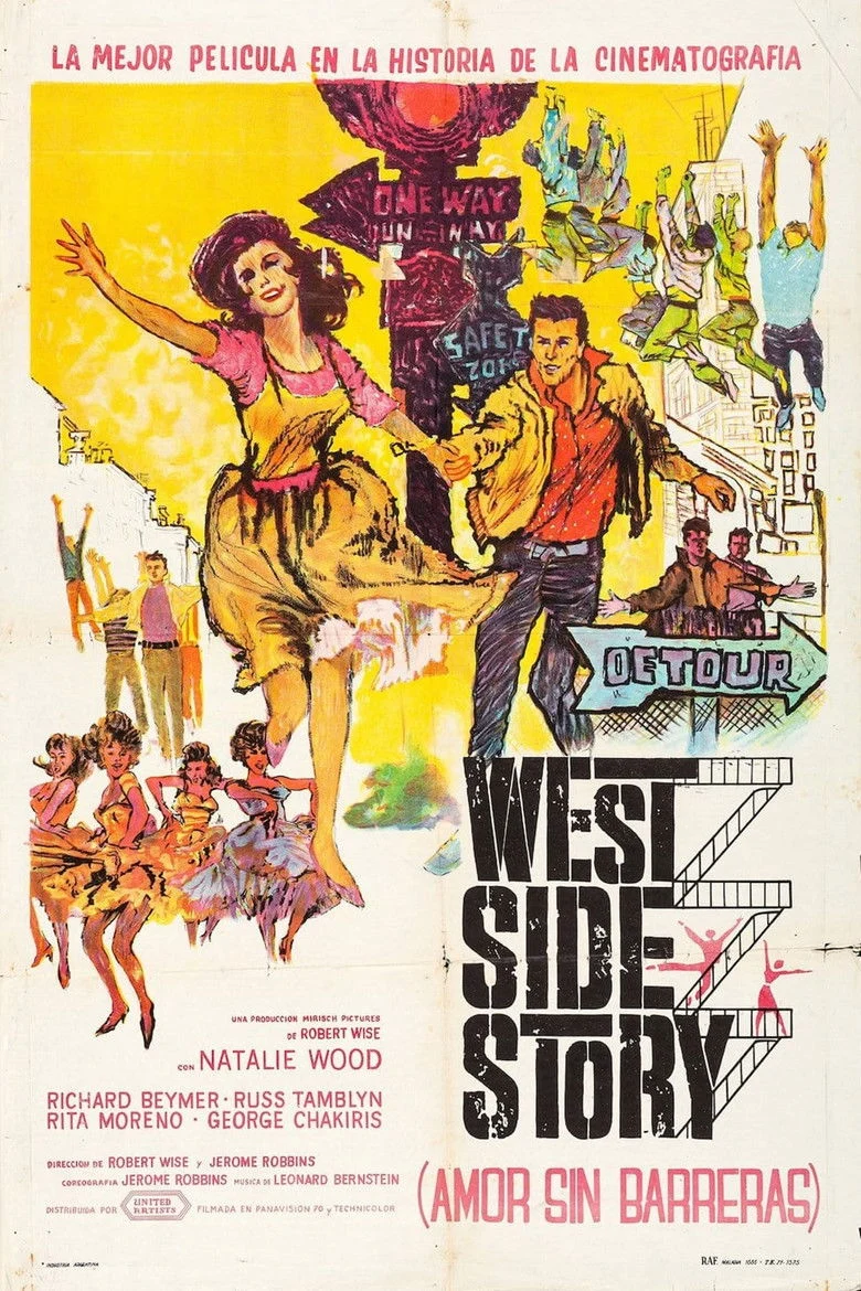 Sinopsis: En el West Side de Nueva York, un barrio marginal, se disputan la hegemonía dos bandas callejeras: los 'sharks', portorriqueños, y los 'jets', de ascendencia europea. El jefe de los primeros es Bernardo, que vive con su hermana María, quien acaba de llegar a Nueva York. Una noche, en un baile, coinciden los dos grupos y se desencadena una violenta pelea.
